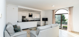 The apartment features a bright and airy open-plan living and dining area, two generously sized bedrooms with fitted wardrobes and air conditioning throughout, and not just one but three private terraces—including a stunning large rooftop solarium, perfect for sunbathing, entertaining, or enjoying beautiful views of the Mediterranean climate.