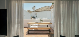 Discover coastal sophistication in this beautifully reimagined 2-bedroom, 2-bathroom penthouse on the New Golden Mile. Nestled within a quiet, gated, charming pueblo-style community in Benamara, this top-floor gem offers a rare blend of artistic design, modern comfort, and effortless beachside living. This penthouse is located just a few minutes’ walk to Salduna Beach and only 10 minutes by car to the glitz and glamour of Puerto Banús.