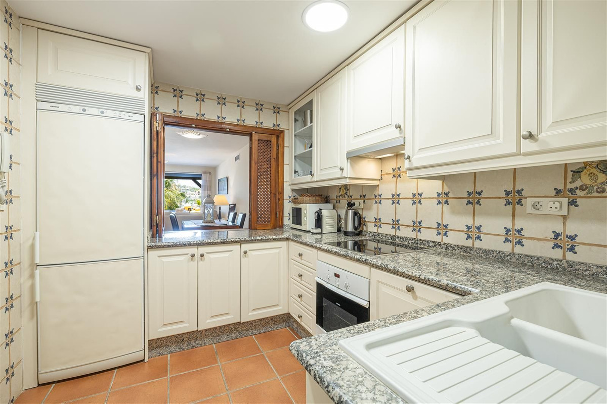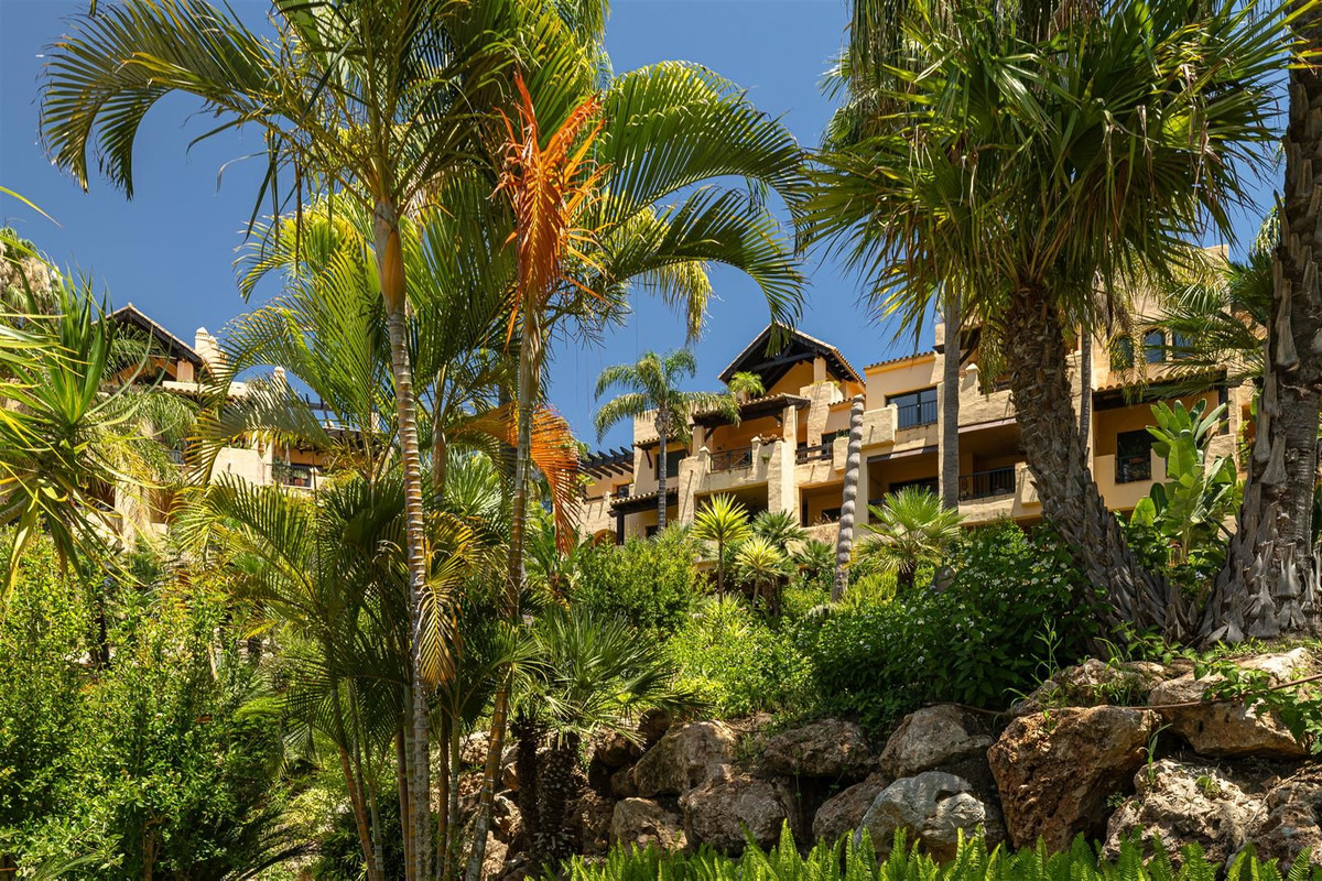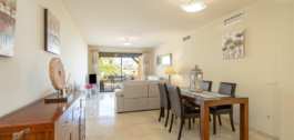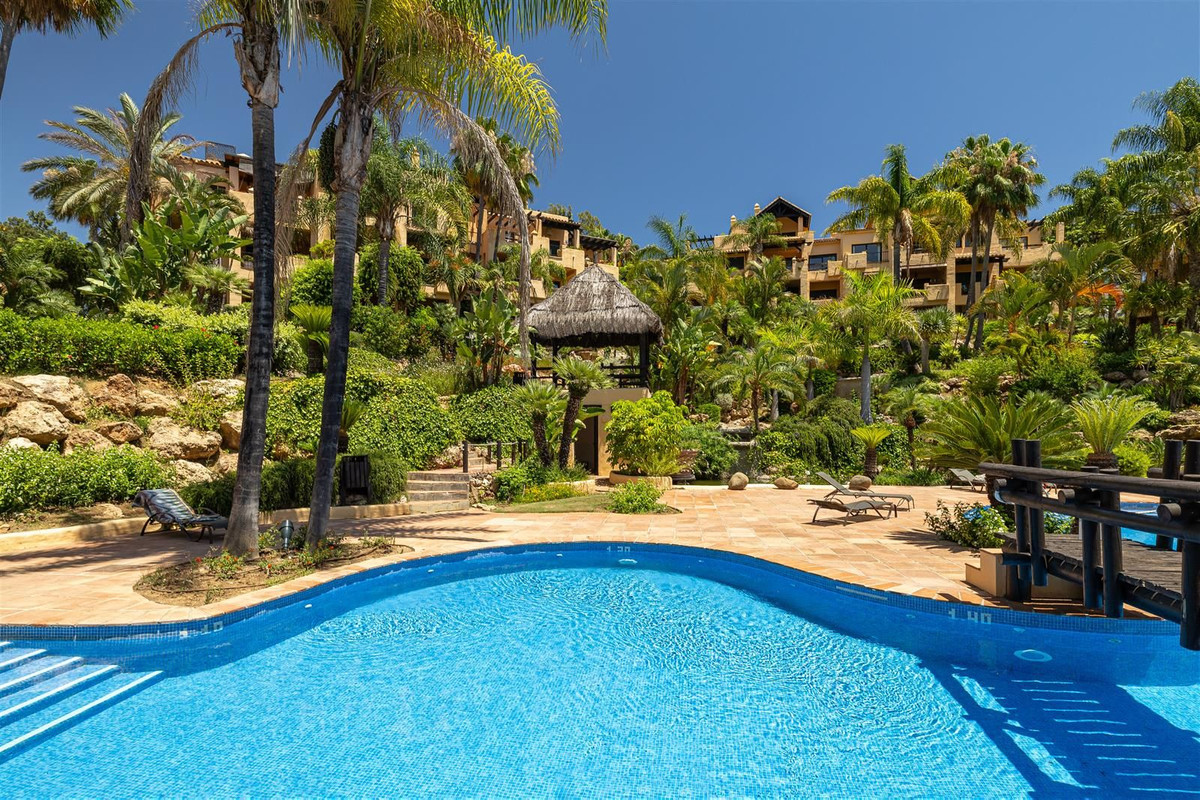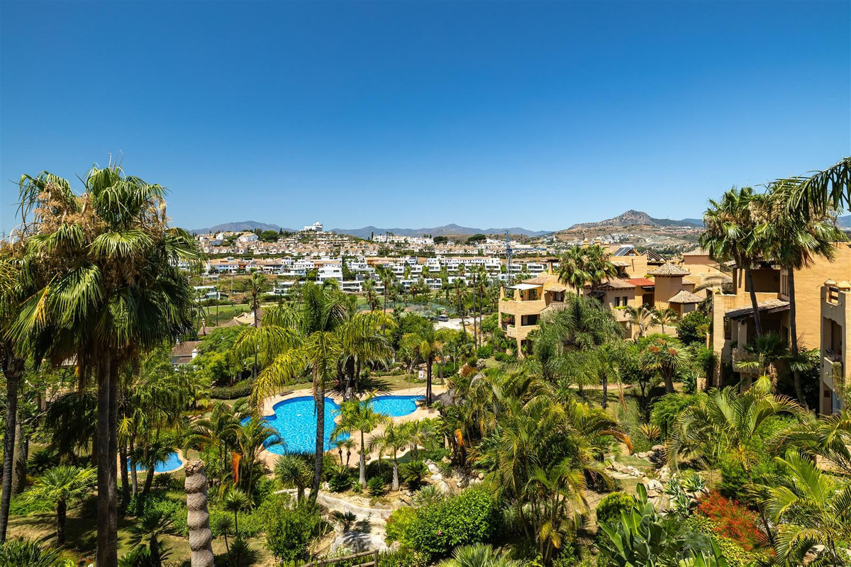 Located in a prestigious gated community on the sought-after New Golden Mile, this stylish top-floor apartment offers two spacious bedrooms, two modern bathrooms, and a bright living area that opens onto a generous west-facing terrace—ideal for enjoying beautiful sunsets and views over manicured gardens and one of three communal pools. The property includes underground parking, a private storeroom, and optional high-quality furnishings. Residents also benefit from walking distance to shops, restaurants, golf, and a premium sports club—with exclusive discounted access. Just a 10-minute drive from world-famous Puerto Banús, this is a rare opportunity in one of the Costa del Sol’s most desirable locations.