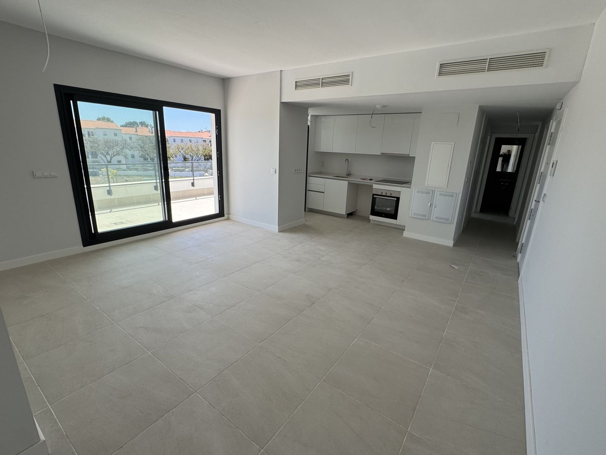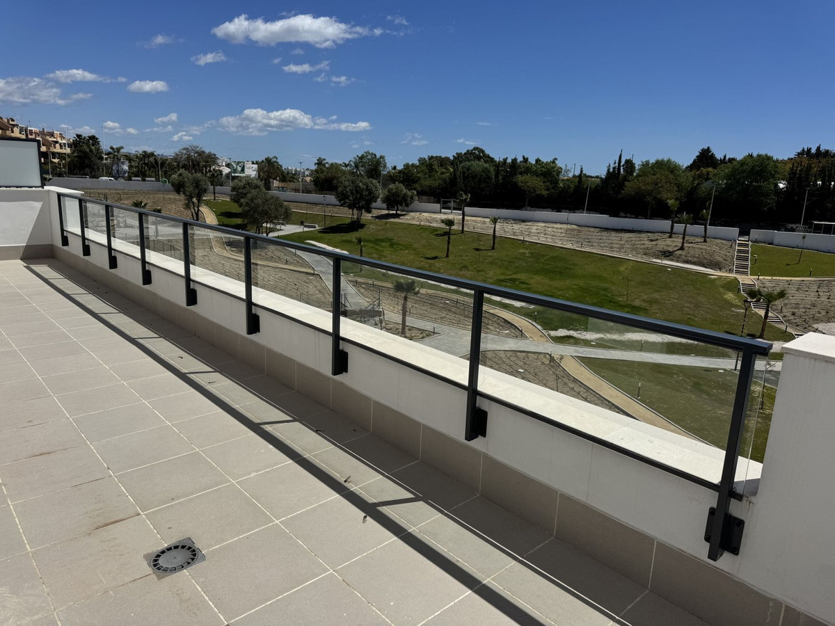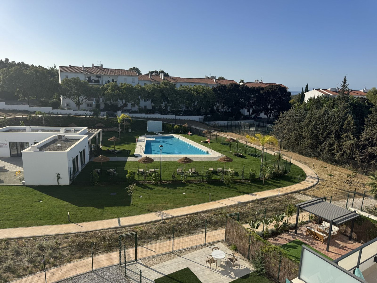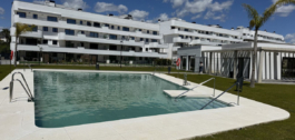 New residential complex with modern flats and penthouses close to golf in Estepona, located in a gated community, adjacent to La Resina Golf Club and a 5-minute drive to the beach.