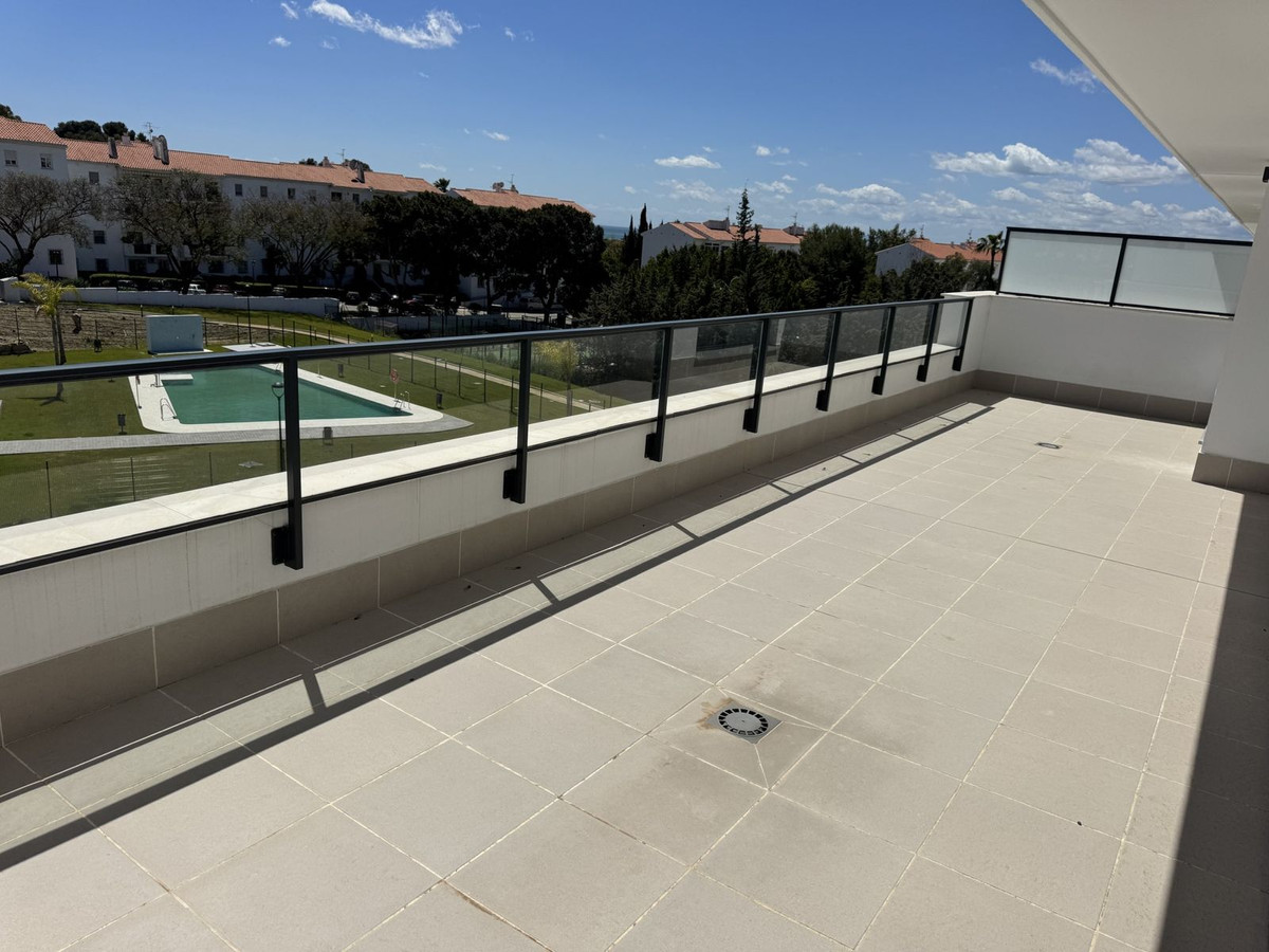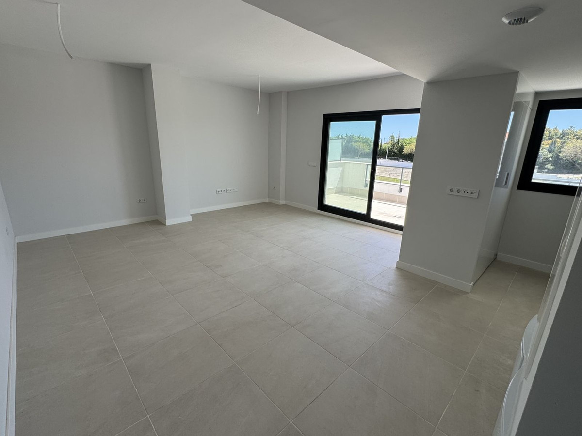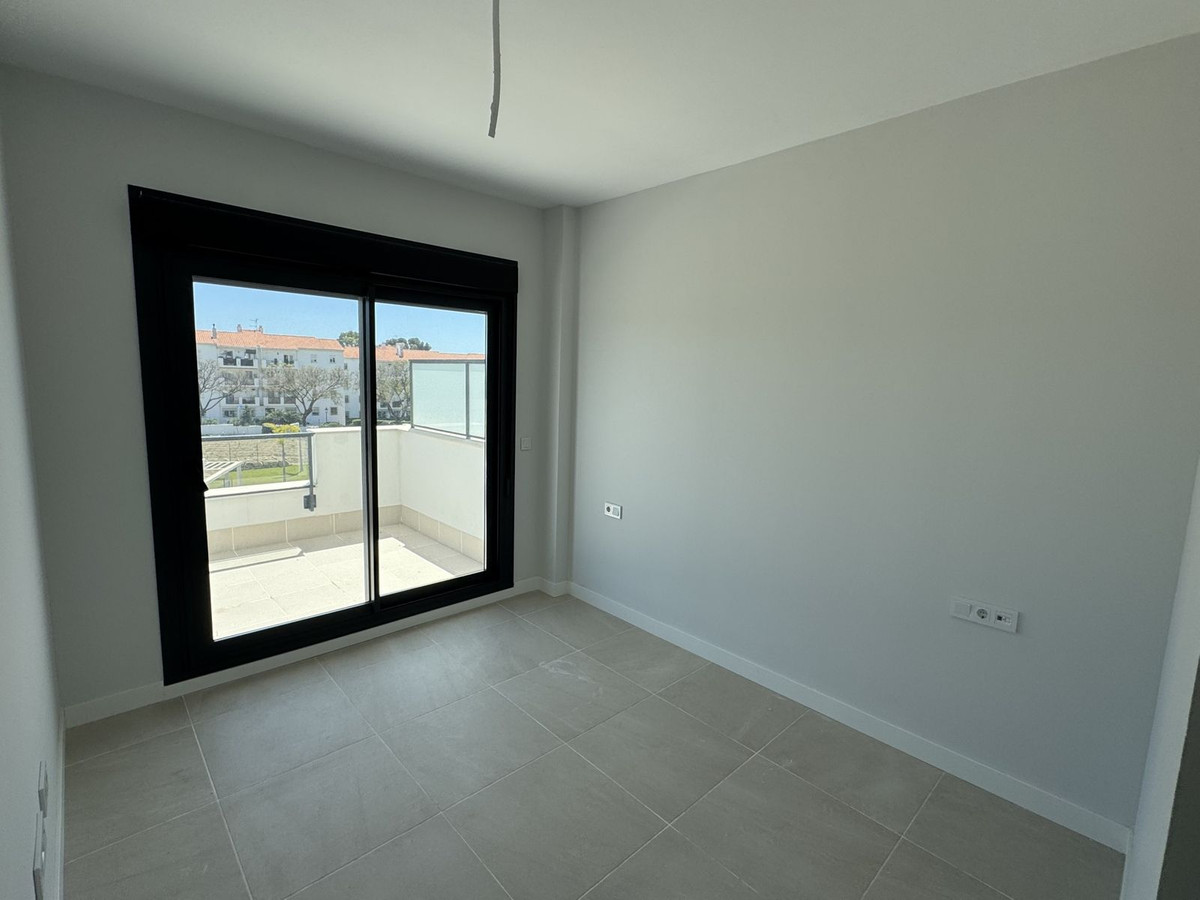 New residential complex with modern flats and penthouses close to golf in Estepona, located in a gated community, adjacent to La Resina Golf Club and a 5-minute drive to the beach.