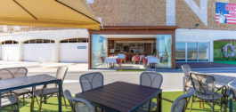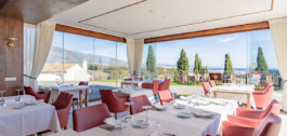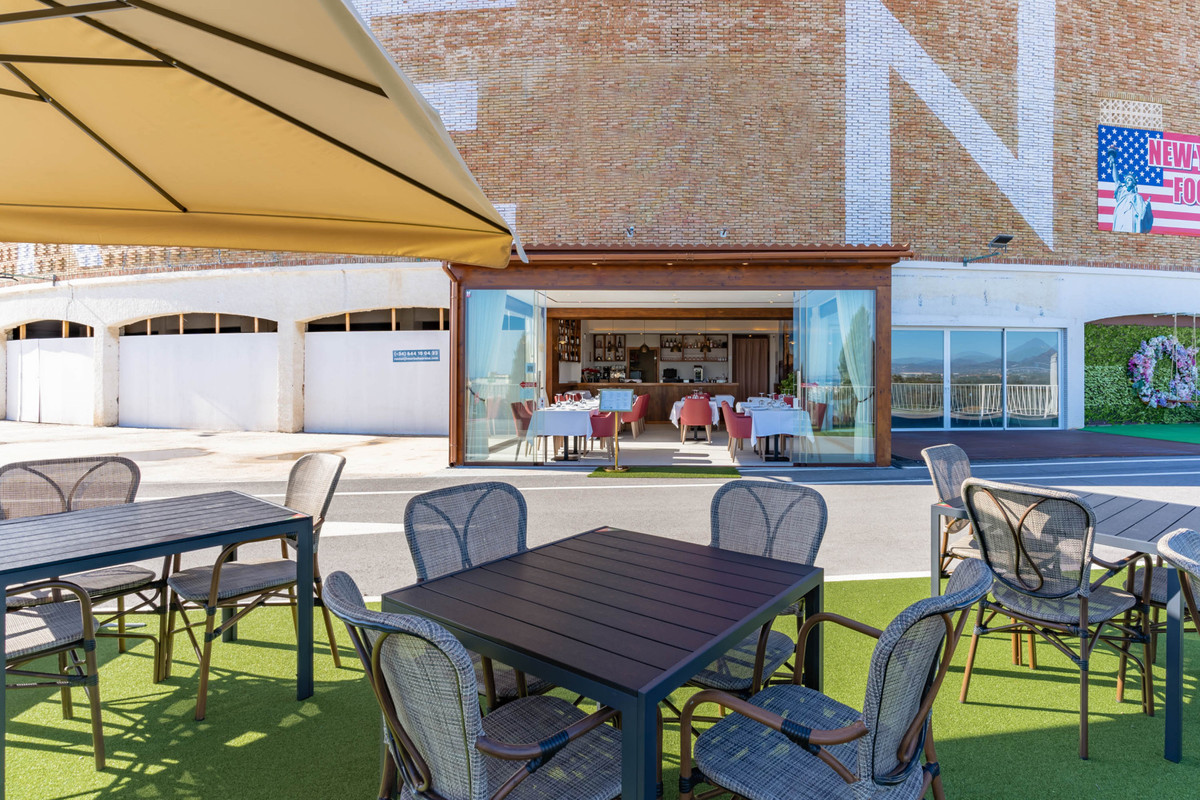 Natural light floods the space through the glass walls that can be opened during the summer, allowing guests to enjoy the stunning surroundings. In winter, the restaurant can be closed with noise-reducing curtains and internal heaters to keep customers cozy.
