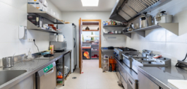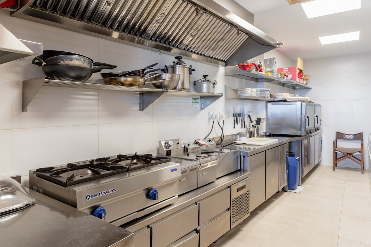Behind the scenes, the kitchen is divided into hot, cold, and wet areas, with ample storage space that meets all safety standards. Ventilation and air ducts are meticulously maintained, and we have comprehensive fire safety equipment.