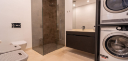 The lower floor leads to the garage which has independent access and is ideal for storing a golf buggy. This level provides two further double bedrooms with natural light coming from patios above and a fully fitted bathroom with laundry machines. There is also a cosy lounge area equipped with a pool table and room to watch television, movies or sport. The villa has 2 private parking spaces and a storage room.