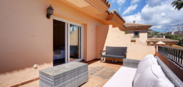 Upstairs you’ll find three double bedrooms and two bathrooms, including a master suite with ensuite and access to a private terrace—ideal for morning coffee or sunbathing. Additional features include cream marble flooring throughout, hot and cold air conditioning, high-speed fibre optic internet and a private car port. This property is an ideal permanent residence, holiday home, or rental investment on the Costa del Sol.