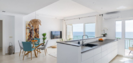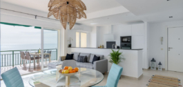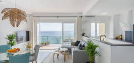 At its amazing location, this dreamy vacation home unfolds with perfection. Boasting a generous 90 m2 layout, it accommodates 2 bedrooms, 2 bathrooms, and a spacious 15 m2 terrace that treats you to breathtaking views. Recently remodelled in 2022, it showcases a brand-new open-plan kitchen with a modern design, contemporary tiling, and two updated bathrooms featuring underfloor heating. The functionality and style of the apartment are elevated by built-in closets in both bedrooms and hallways.