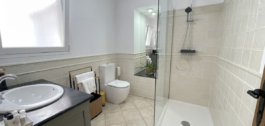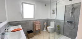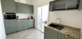 The first floor houses the second apartment, which exudes a sense of spaciousness and comfort. It boasts two double bedrooms, a stylish living room, and a well-appointed shower room. The separate kitchen, with its sleek finishes, provides ample space for culinary pursuits and leads out to a large terrace, offering a serene retreat for relaxation and outdoor gatherings.