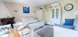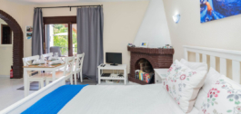 House number 2, is a very spacious studio with a King size bed, sofa bed, fireplace, kitchen, bathroom, south-facing terrace, barbecue and sea views!