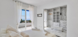 The house enjoys sea views from the upper floor and mountain views from the other side, creating a unique setting between nature and the sea.