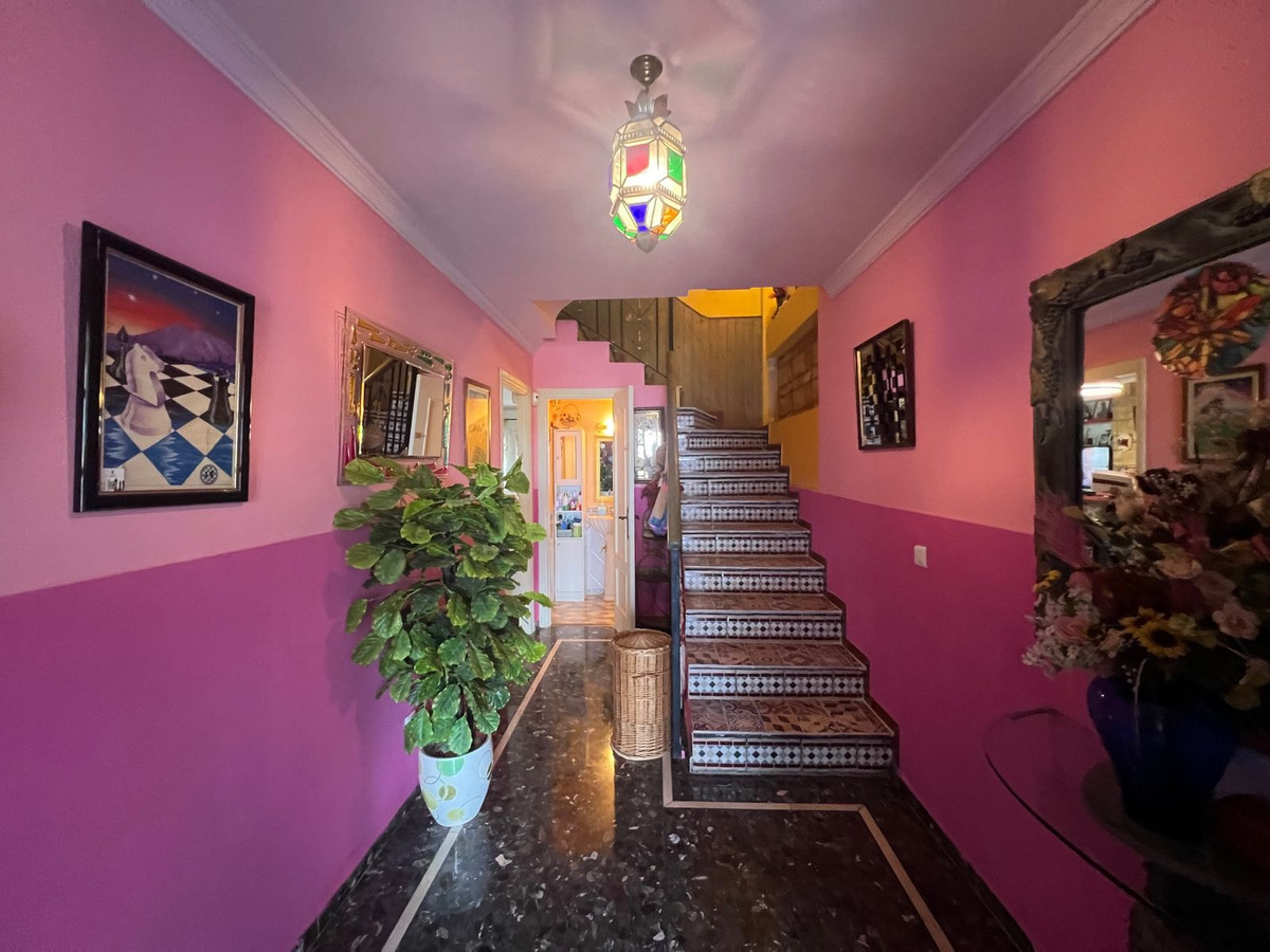 Townhouse for sale is located in the area of Avenida de Andalucia in Estepona. With a total surface area of 284 m² and a living area of 250 m², this property has 2 single bedrooms, 2 double bedrooms, 2 bathrooms, 1 toilet and is adapted for disabled people. Among its amenities, we can highlight the air conditioning (hot and cold), fireplace, kitchen, dining room, laundry room, terrace and patio. The property, which is between 20 and 30 years old, is in a good state of conservation and offers a south orientation, which provides natural light during most of the day. The area of Avenida de Andalucía is in the process of urban development, characterised by the quality of the new buildings and its privileged location, which makes it a place with good prospects for the future.