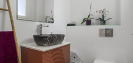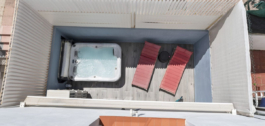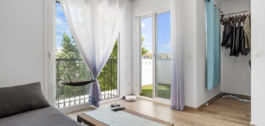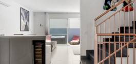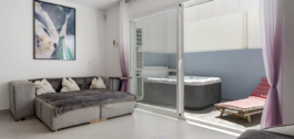 The open-plan living area leads to a stylish terrace with a bioclimatic pergola and outdoor jacuzzi, creating a private oasis for relaxation. The house comes fully furnished, and includes air conditioning, underfloor heating, double glazing, electric shutters, alarm system, and an excellent A-rated energy certificate. A 6.3 kWh solar panel system ensures extremely low annual electricity costs (approx. 300–500€).