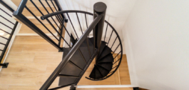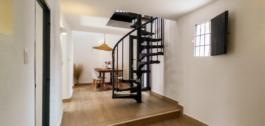 An open passage leads to the dining area under an impressive five-meter-high ceiling. From here there is access to the patio and a separate office, which can also serve as an additional bedroom. A striking spiral staircase takes you upstairs, where two spacious bedrooms await. The master bedroom includes a walk-in closet and a French balcony, while the second bedroom is light, airy, and has direct access to a large terrace with beautiful views.