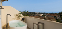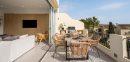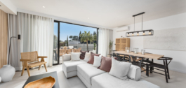 This renovated townhouse in Pinos de Aloha combines modern comfort with Mediterranean charm. Located in a quiet residential area near Aloha Golf Club, it offers a peaceful setting while being close to Puerto Banús, shops, and international schools, including the prestigious Aloha College.