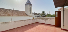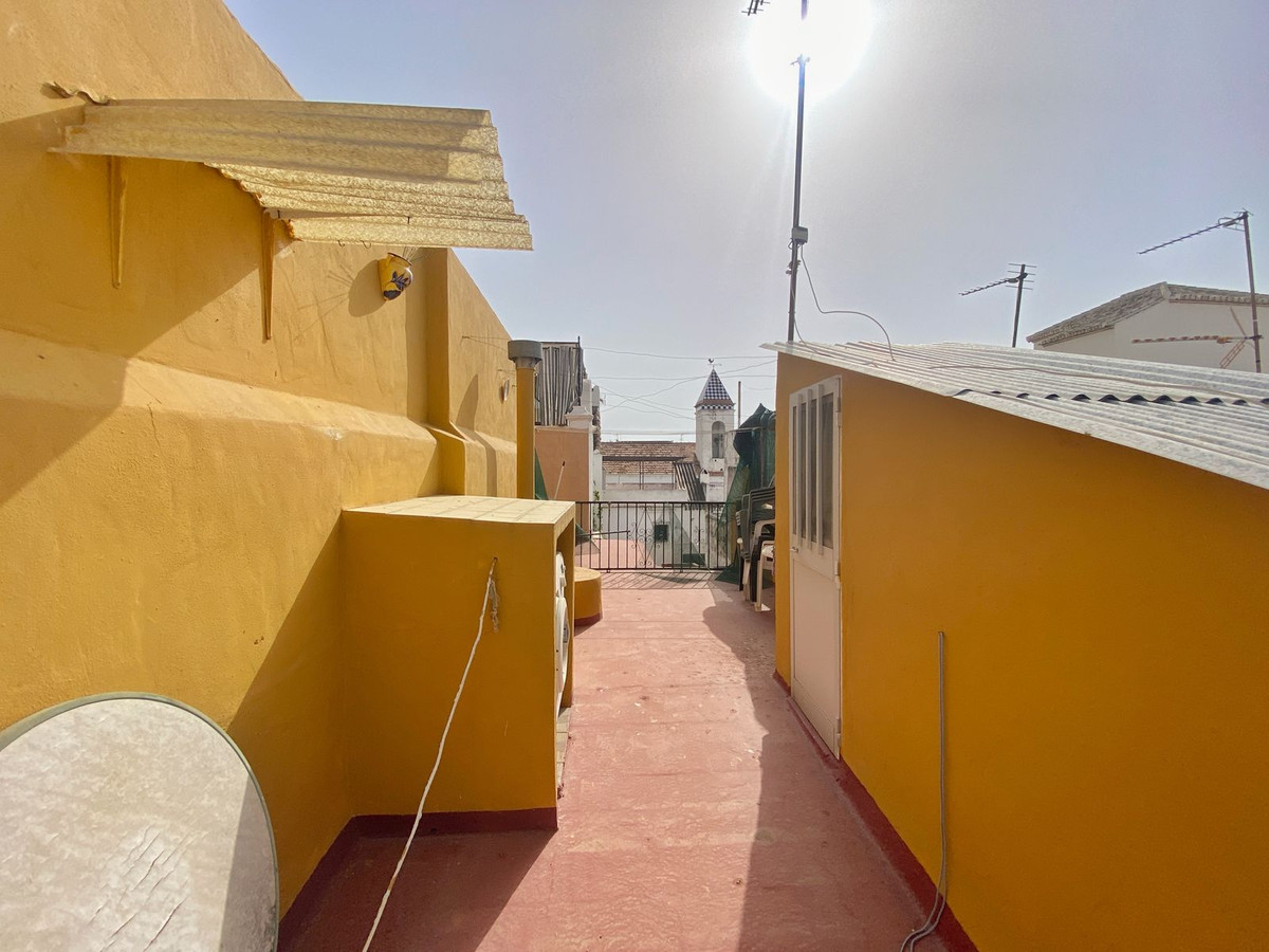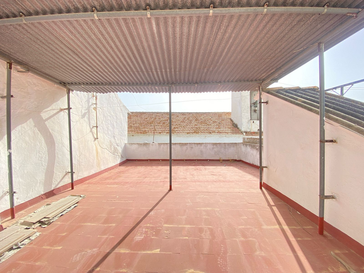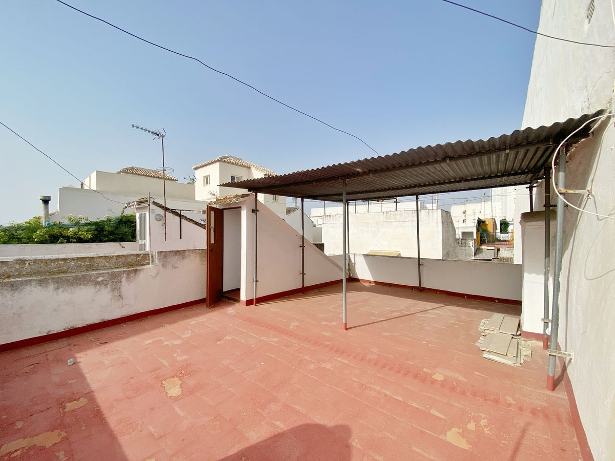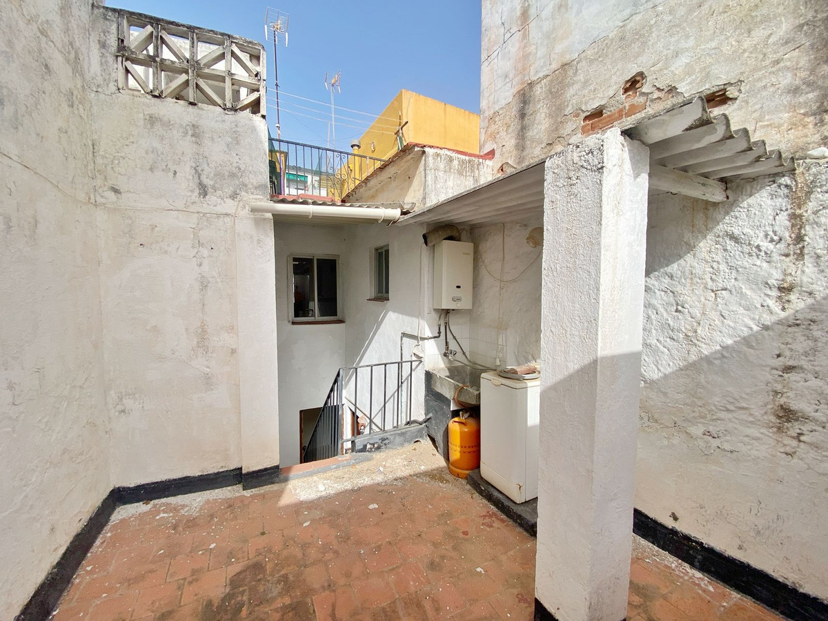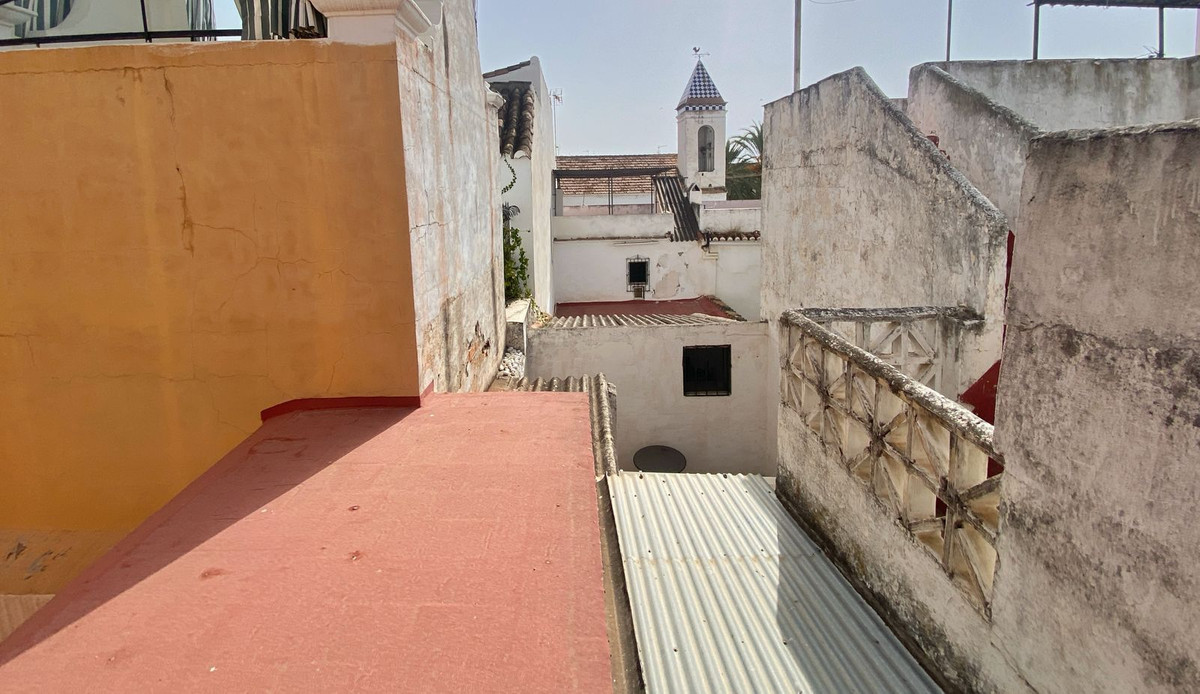 A two-story building in need of restoration, featuring several bedrooms and two small, independent apartments with several terraces and patios.