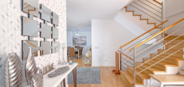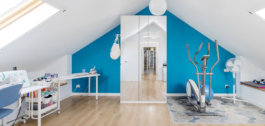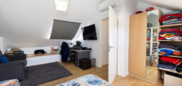 With a built area of 238 m² on a 200 m² plot, the property is distributed across four levels, maximising space and natural light. It features six bedrooms, four bathrooms (with the possibility of adding a fifth), and two spacious garages. The main floor includes a bright and open living area, a separate dining room, and a modern fully equipped kitchen. The master bedroom comes with a large dressing room that could easily be converted into an additional bedroom if desired.