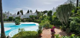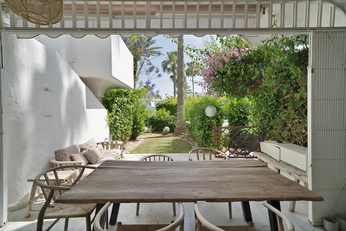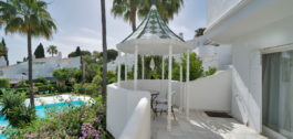 Town House for sale in Camojan Blanco, Marbella with 4 bedrooms, 4 bathrooms, 4 en suite bathrooms and with orientation south, with communal swimming pool and private garden. Regarding property dimensions, it has 233 m² built. Has the following facilities garden view, pool view and partial sea views.