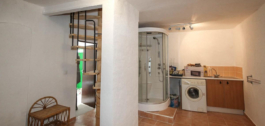 Aside from plenty of street parking, the property has a private garage, and entrance area that can only be accessed by the owners. The Andalusian green painted garage leads to extra space that could be used as a fourth bedroom and third bathroom. There is access here to the main house here via a spiral staircase.