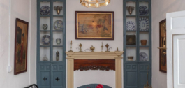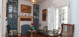The ground floor welcomes you with high ceilings, original ceramic floors, and intricately detailed plaster moldings. The salon boasts a fireplace that exudes old-world charm and traditional cabinetary.